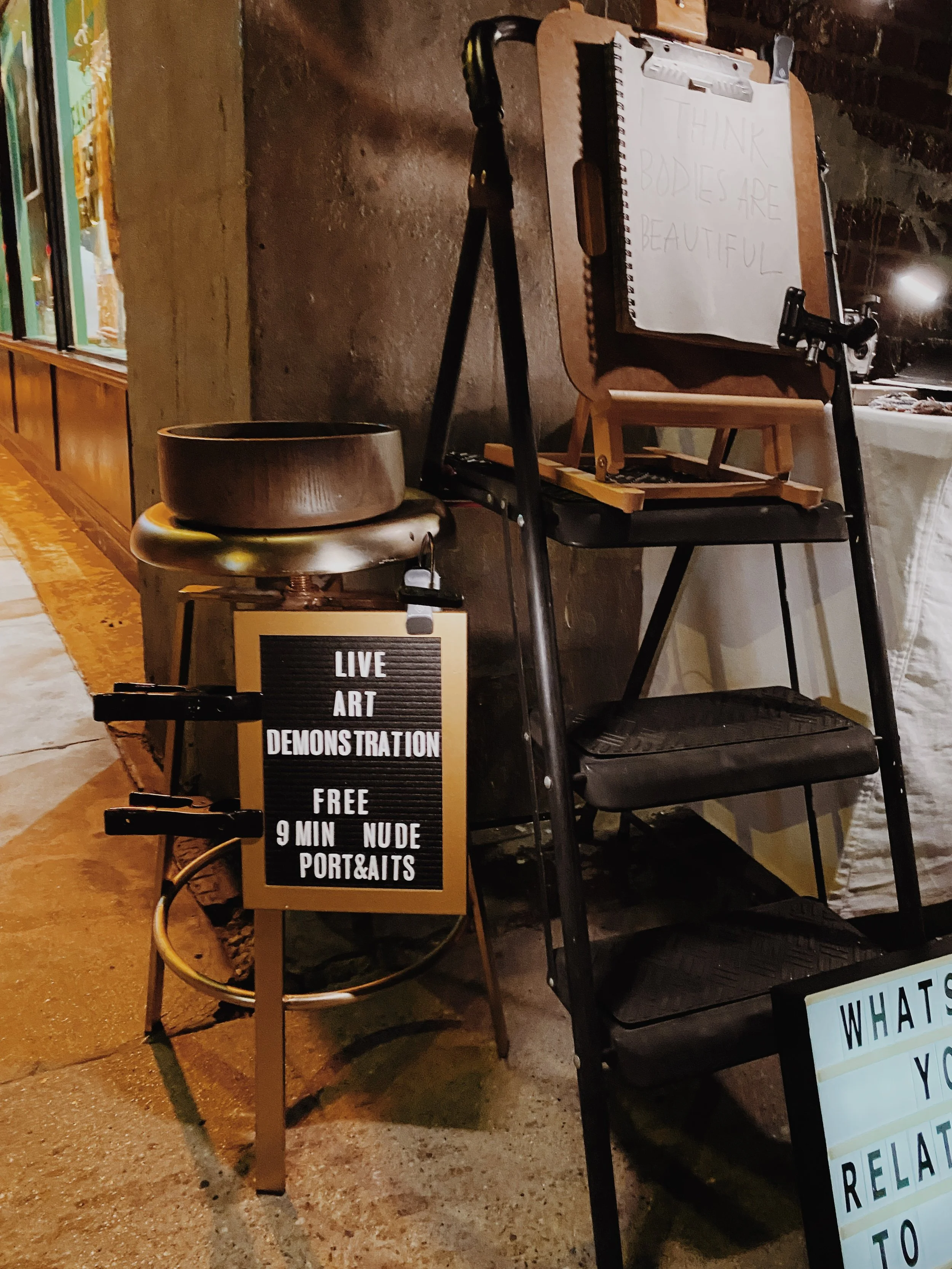 If posing nude on a public sidewalk is not your speed, but you’re still interested in liberation & self empowerment through Nude Portrait work, click here to learn more about Workshop Installations.